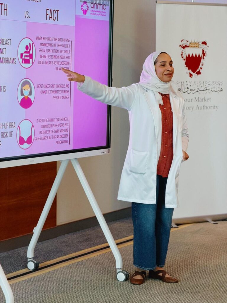 أقامت هيئة تنظيم سوق العمل بالتعاون مع مركز النخيل الطبي، فعاليتين توعويتين حول سرطان الثدي، تزامنًا مع شهر أكتوبر، الذي يخصص عالميًا لتعزيز الوعي المجتمعي بهذا المرض وبأهمية الكشف المبكر للحد من مضاعفاته وتسريع العلاج.