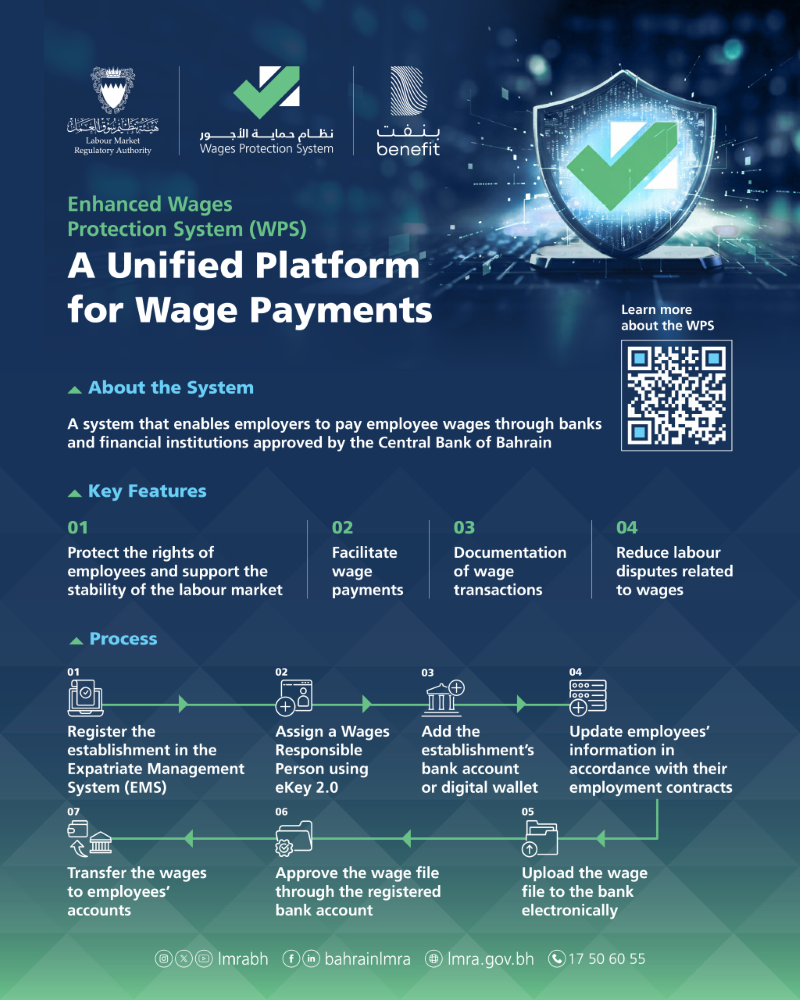The Labour Market Regulatory Authority (LMRA) has launched the enhanced version of the Wages Protection System (WPS), aimed at safeguarding the rights of all work parties and ensuring that employee wages are paid on time, supporting contractual stability in the private sector.